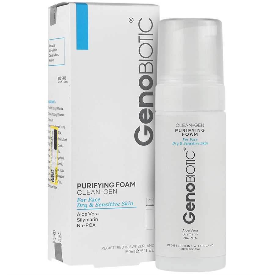 این محصول برای پاکسازی و شستشوی روزانه پوست های خشک و حساس طراحی شده است. فوم ژنوبایوتیک پوست خشک دارای خاصیت آبرسانی و مرطوب کنندگی است و از بروز حساسیت های پوستی پیشگیری می کند. فوم شستشوی صورت ژنوبایوتیک (مناسب پوست های خشک و حساس) فاقد پارابن و مواد صابونی می باشد.